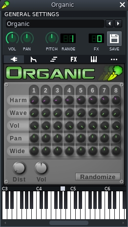 Organic is an additive synthesizer which combins the output of up to 8 oscillators.
