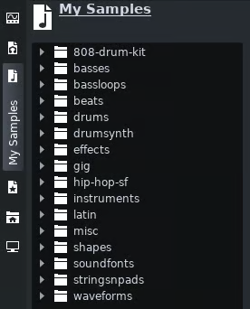 * 直接双击侧边栏中的采样名称，可以将采样添加入样式编辑器（歌曲编辑器不能这样做）。