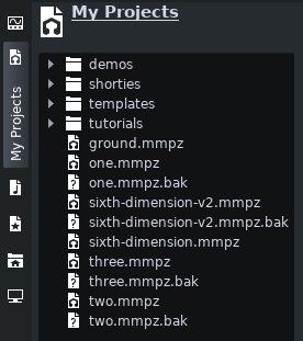 展开 **我的工程** 选项卡后，您会看到从您的 LMMS 安装目录中 `Project` 文件夹同步的内容。