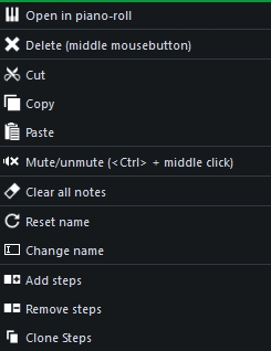 Open in piano-roll opens the clicked-on pattern in the Piano Roll Editor